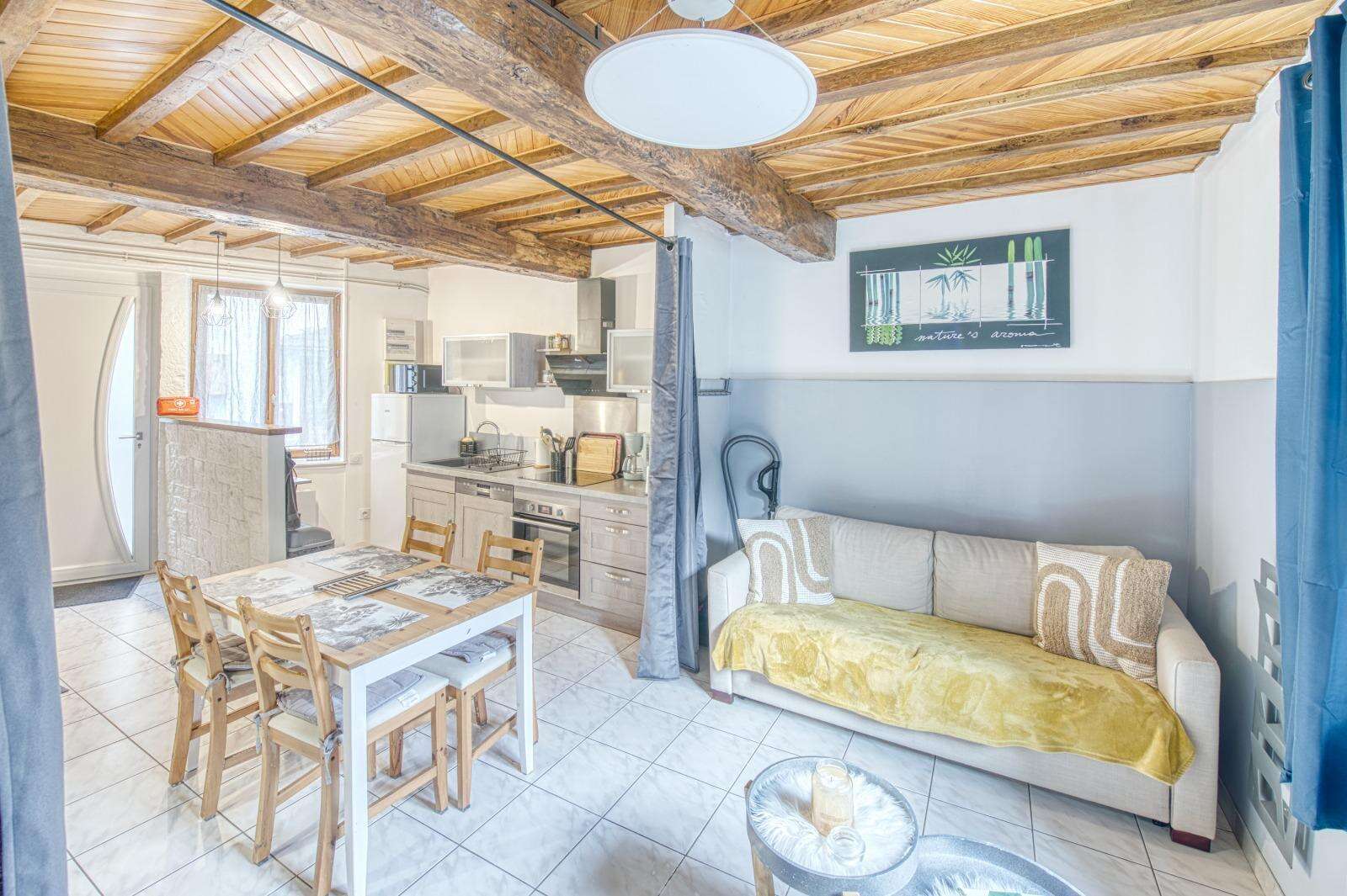 Pensée pour allier simplicité et praticité, elle dispose de deux chambres avec lits doubles, d’un canapé convertible, d’une cuisine entièrement équipée et d’un espace de vie convivial. Tout est réuni pour que votre séjour soit serein, agréable et autonome.